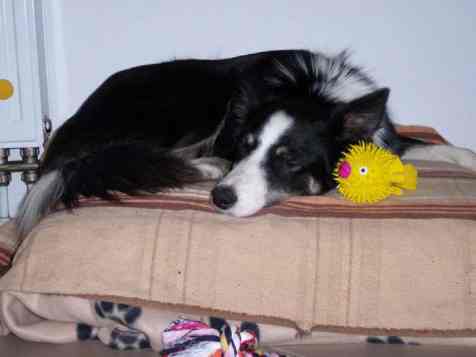 Was ich im Moment auch noch nicht so richtig verstehe: sie wollen mit mir spielen! Damit kann ich gar nichts anfangen. Da halten sie mir bunte Taue mit Knoten vor die Nase, oder wenn wir draußen sind Stöckchen, und so ein schrecklicher Quietschefisch ist auch dabei. Bei dem habe ich am Anfang, mit einem schrägen Blick, lieber den Raum verlassen, jetzt darf er neben mir liegen (siehe 1. Bild) aber spielen werde ich nicht mit ihm. Vielleicht später, man kann sich doch auch ein paar Sachen aufheben, oder?