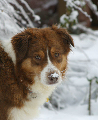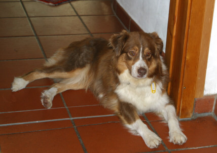 Calypso hat sich gleich den richtigen Pflegeplatz ausgesucht, als sie nach Deutschland kam. Immerhin gab es hier schon immer Austr. Shep. in der Familie. So kam es, wie es wohl kommen mußte: