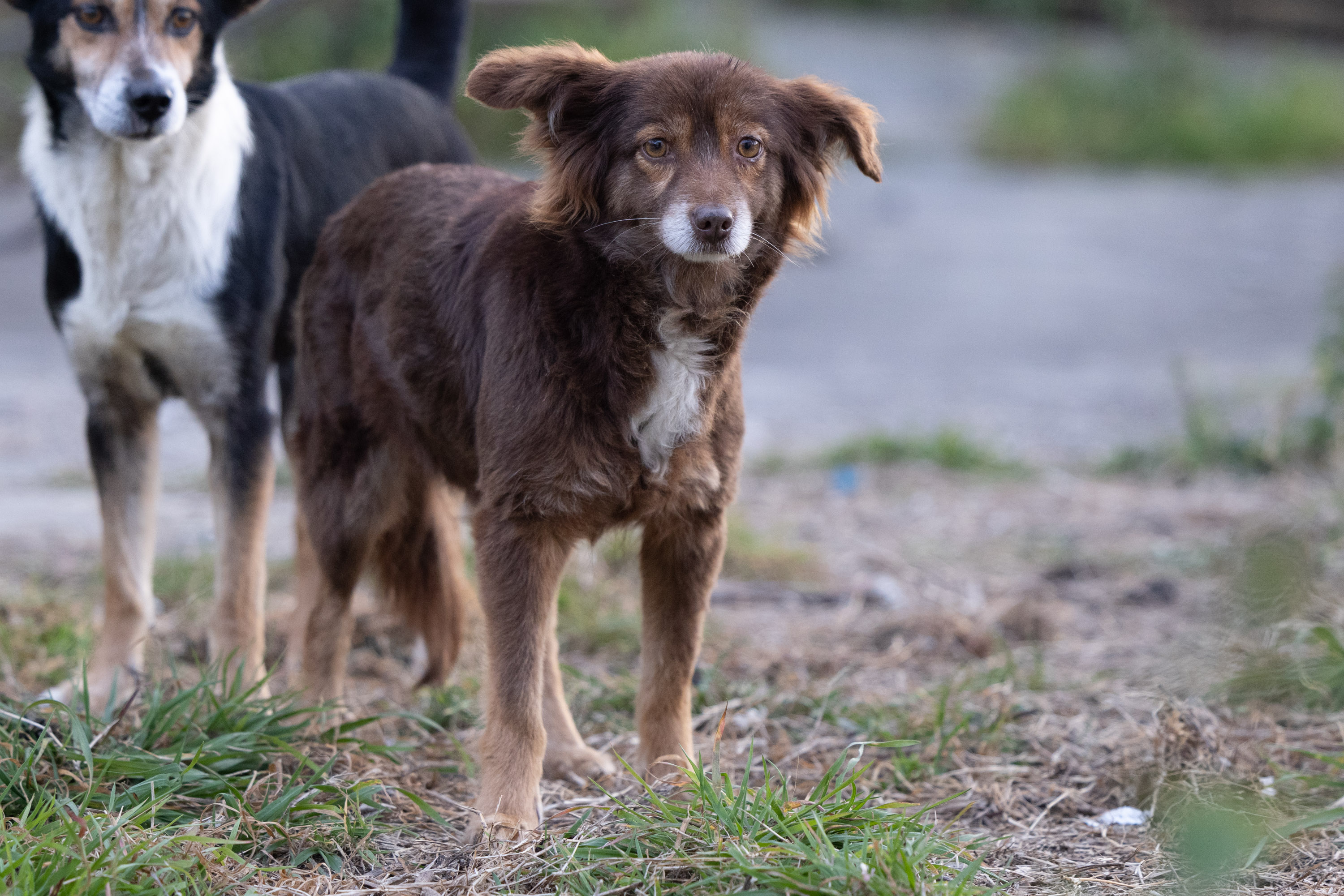 Nicht alle Hunde sind in einem guten Zustand. Das Rudel hat wohl nie einen Tierarzt gesehen und wer sich nicht sein Futter erhaschen konnte, ging leer aus…