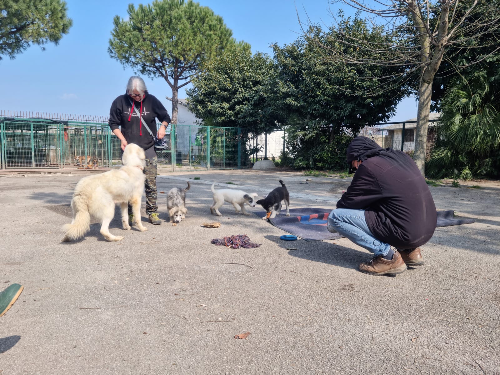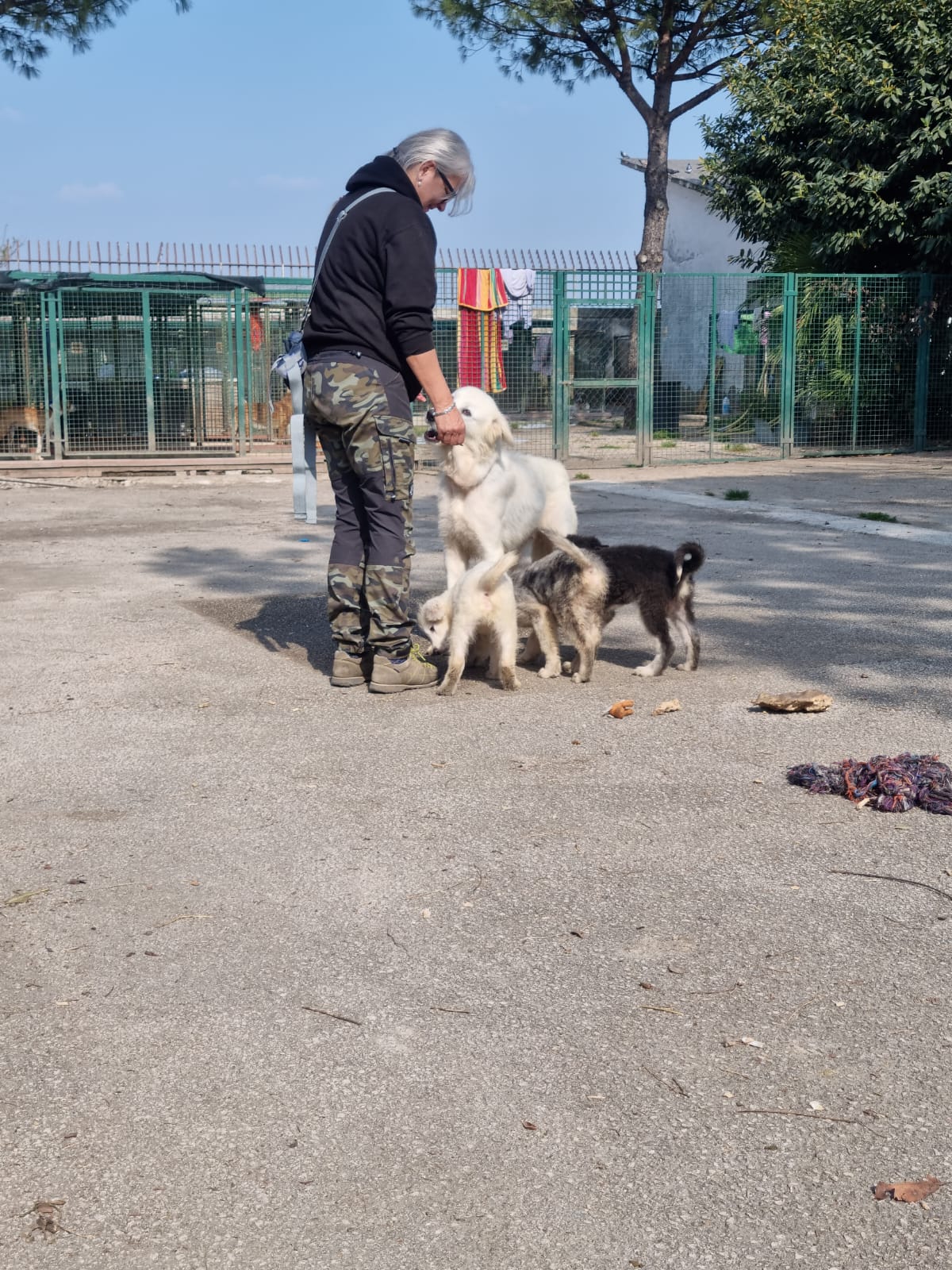 Unser Trapoteam ist gerade in Italien und hat auch Mina mit ihren Welpen kennen gelernt. Es ist wahrlich einfach ein Wunder wie Hunde trotz schlechter Erfahrungen so freundlich, lebensfroh und offen sind. Mina und Ihre Welpen erfreuen sich sehr an dem Besuch. Auch wenn Lucky erstmal laut gebellt hat, so muss das ja auch sein als Herdimix wenn da jemand Fremdes kommt. Die Vier springen fröhlich draußen rum, wie auf den Videos zu sehen ist.