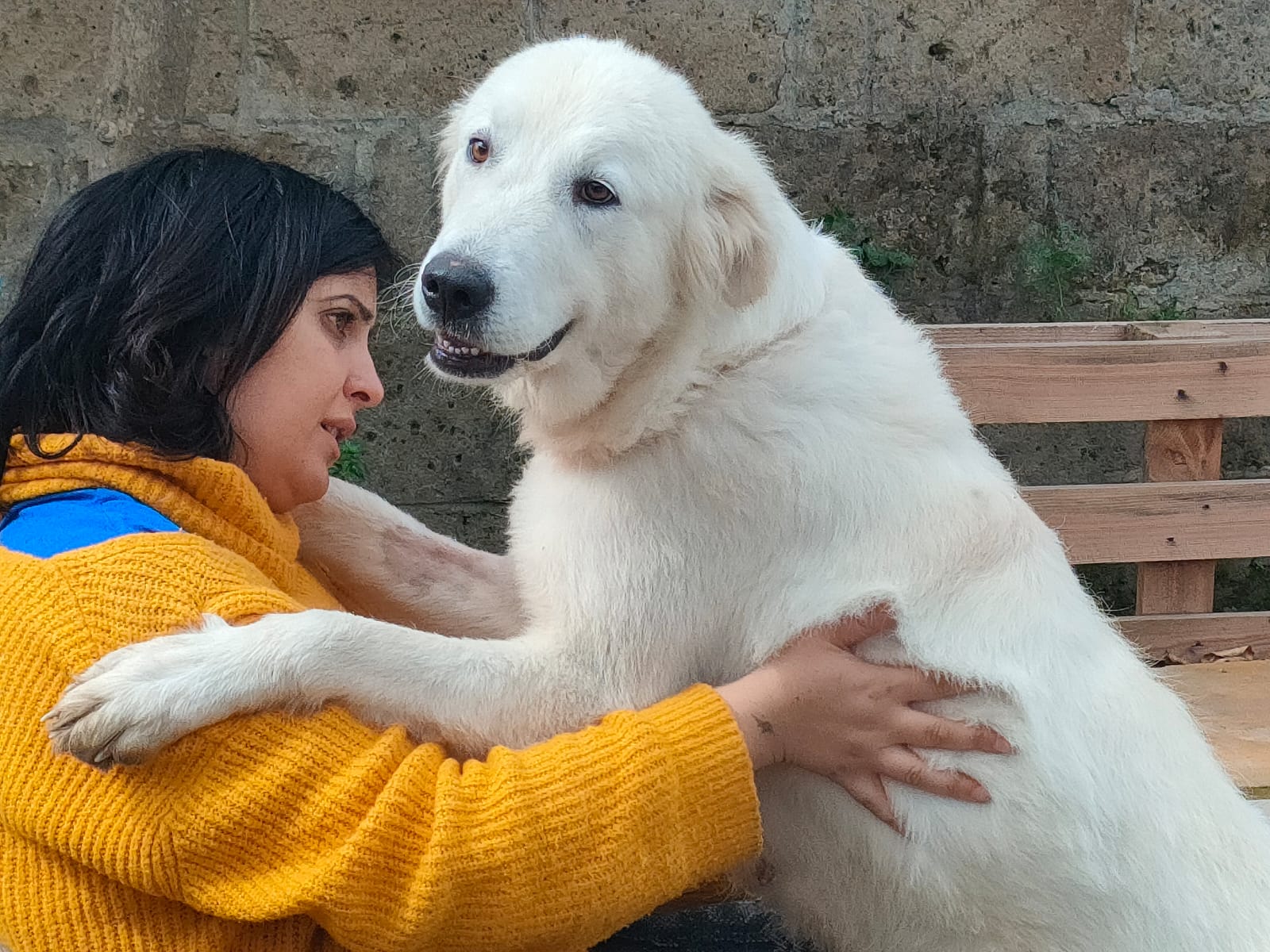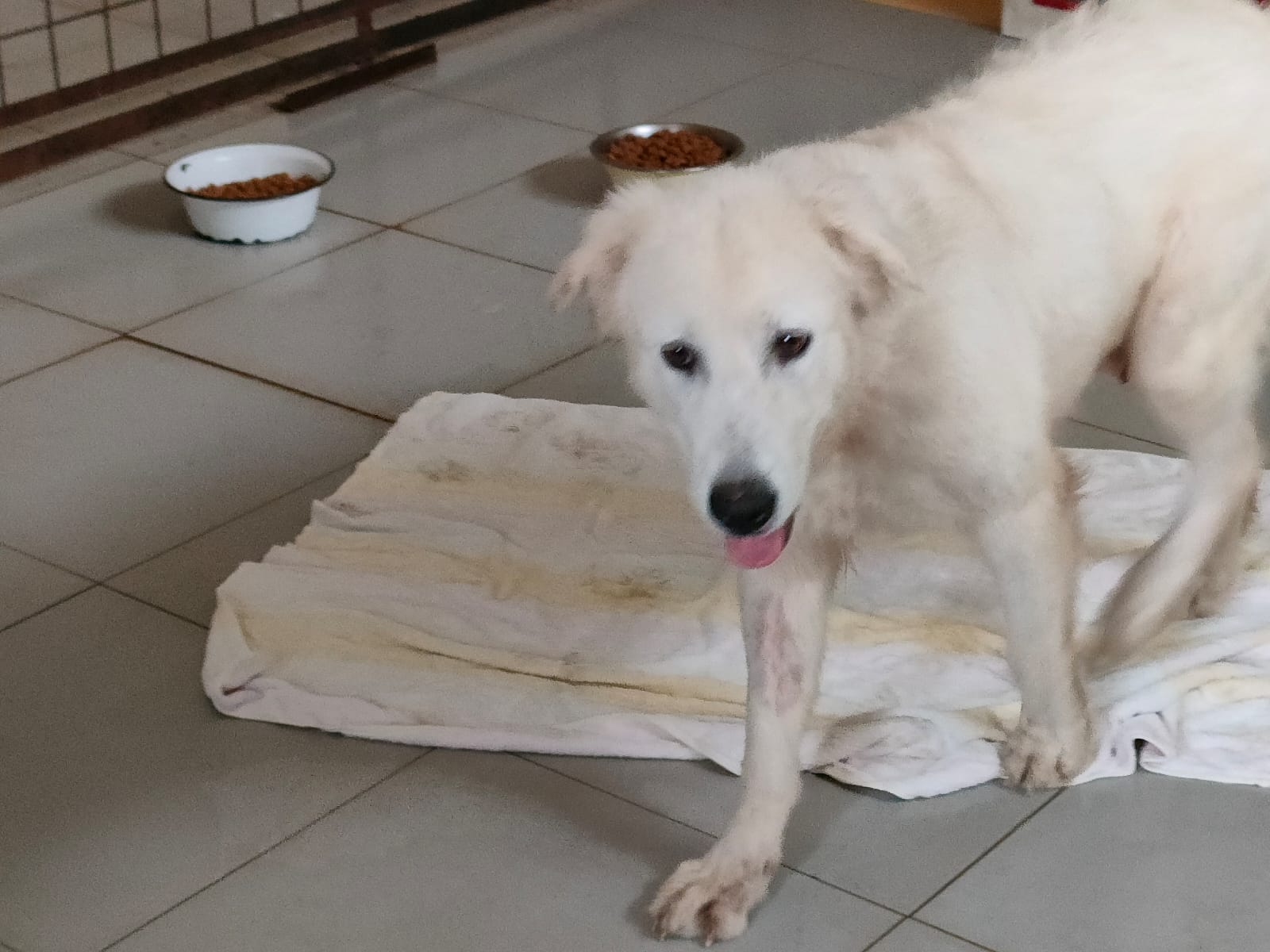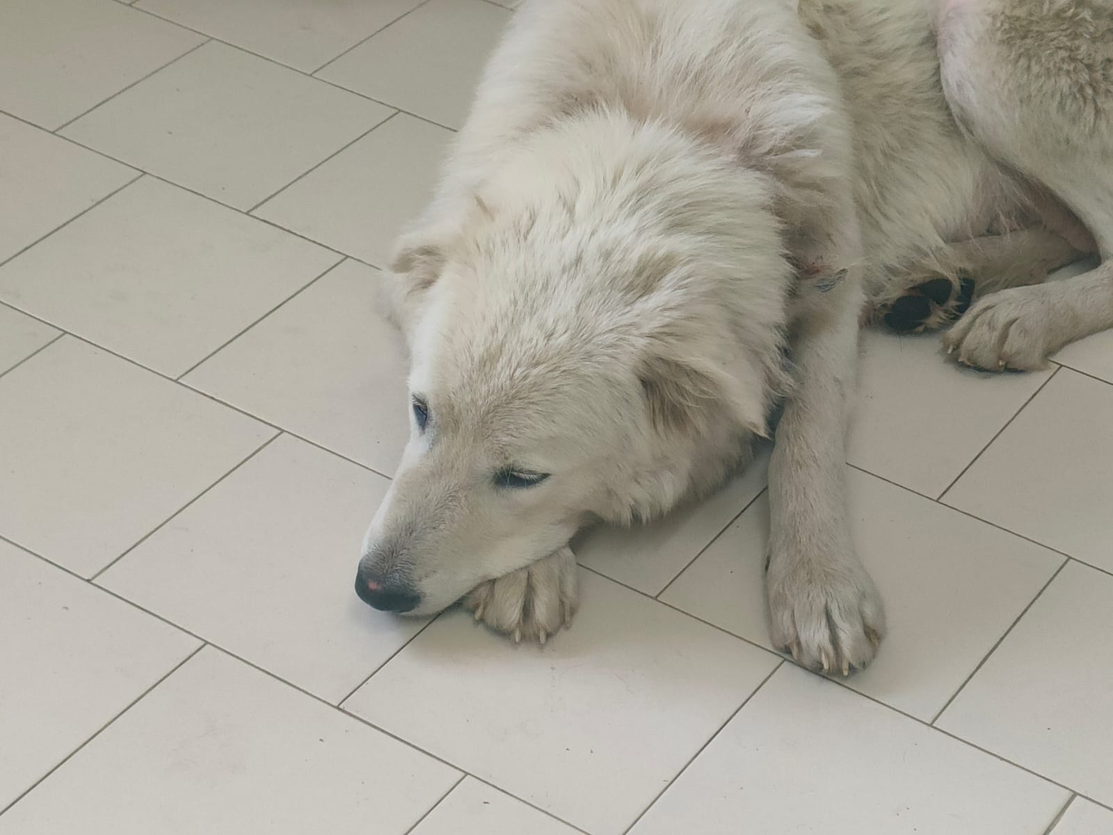 Bei Mina handelt es sich um eine Maremmanomixhündin, sie ist etwa 1,5 Jahre jung.