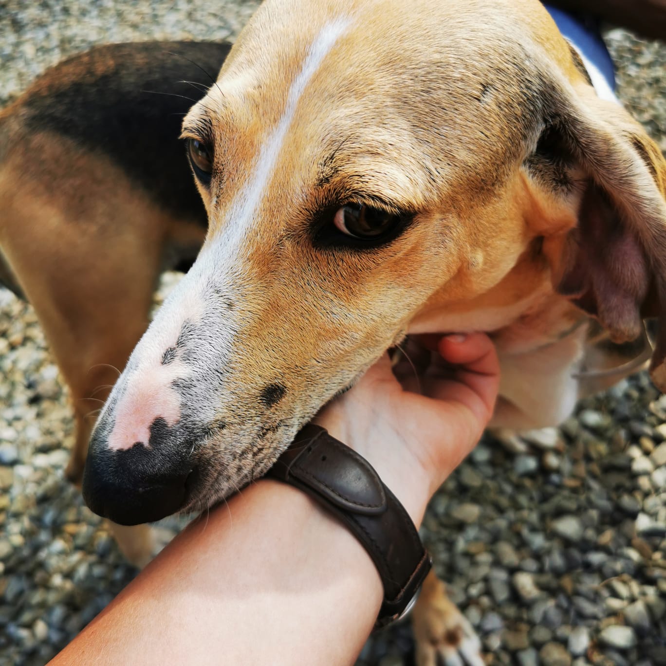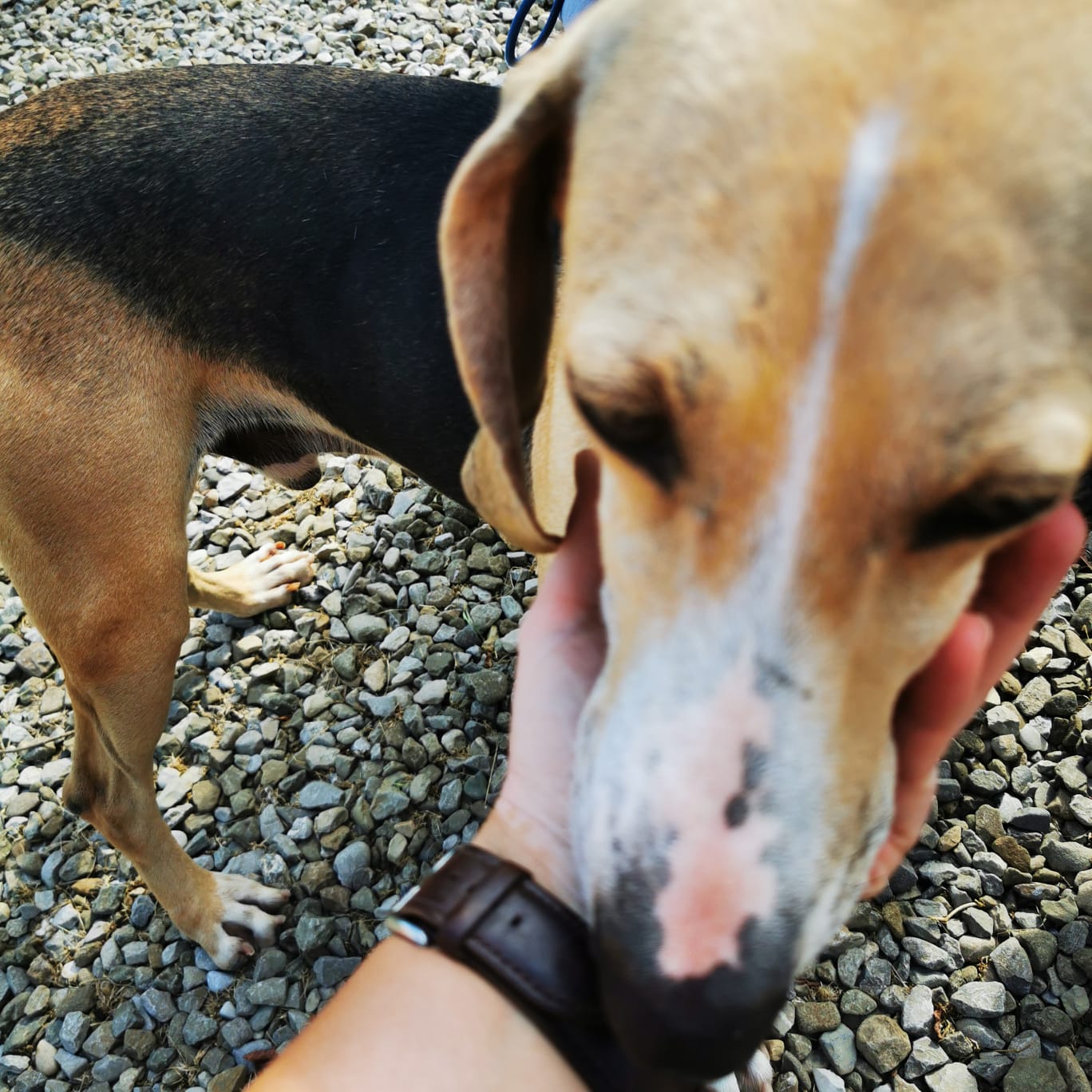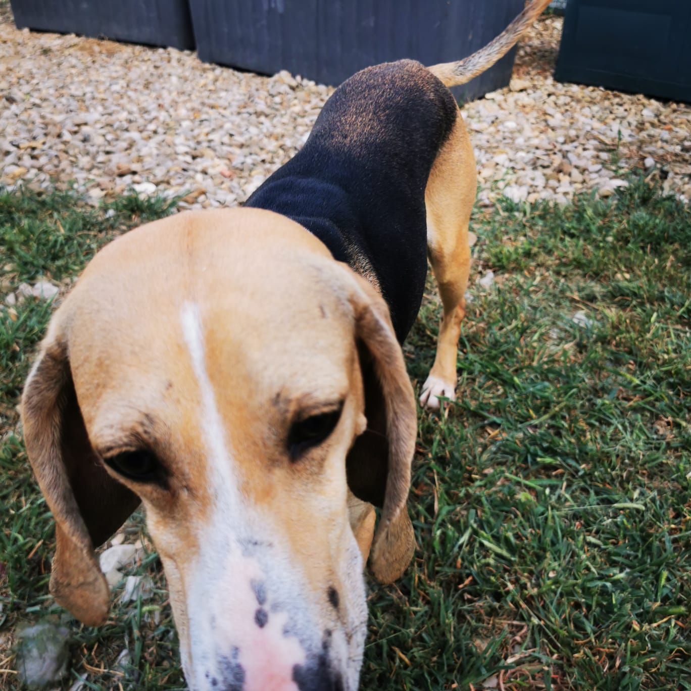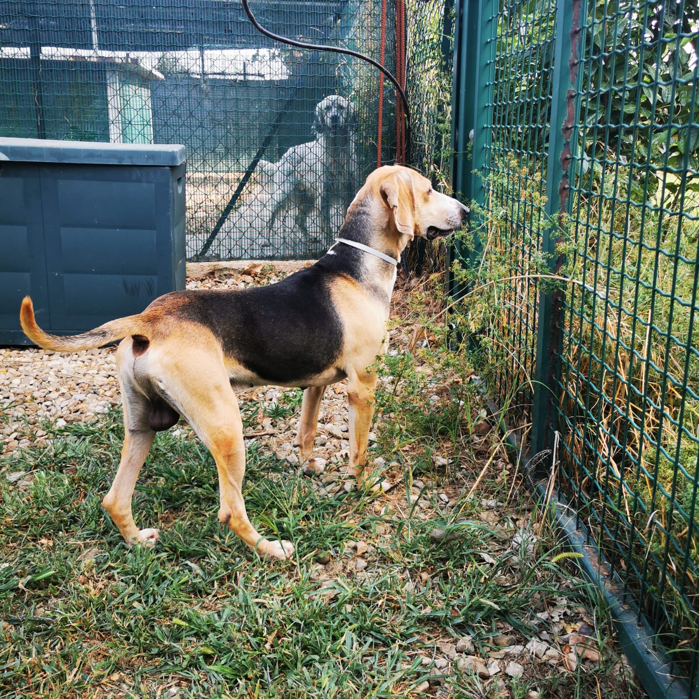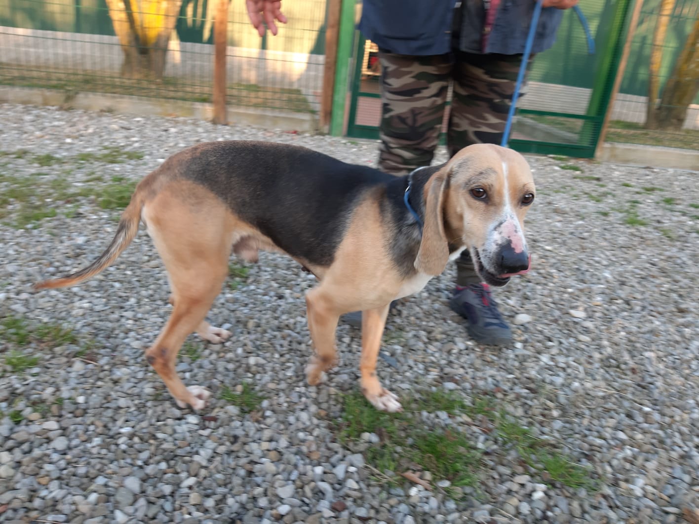 „Ringo ist ein Knaller“ …ein wunderschöner Hund, ganz zart, ganz fein, ganz sensibel. Liebevoller Kerl, saugt Streicheleinheiten förmlich auf. Er braucht ganz liebe, sensible Menschen, ruhig und Segugio verliebt. Jagdtrieb wird er ordentlich haben, die Nase war im Freilauf nur auf dem Boden, das komplette Areal wurde abgesucht nach Spuren. Schulterhöhe: 48,5 cm.