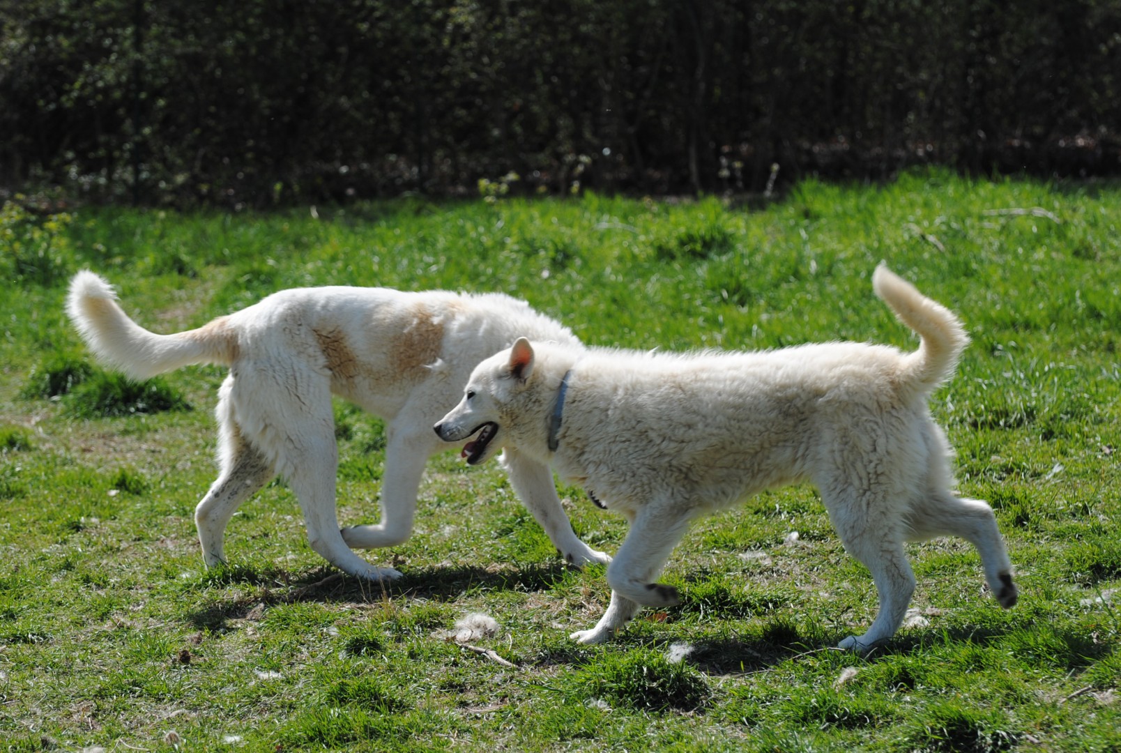 Die drei Brüder haben mit anderen Hunden kein Problem, nur wenn es ums fressen geht sind sie etwas neidisch, da muss geschaut werden, dass jeder bei seinem Fressen bleibt.