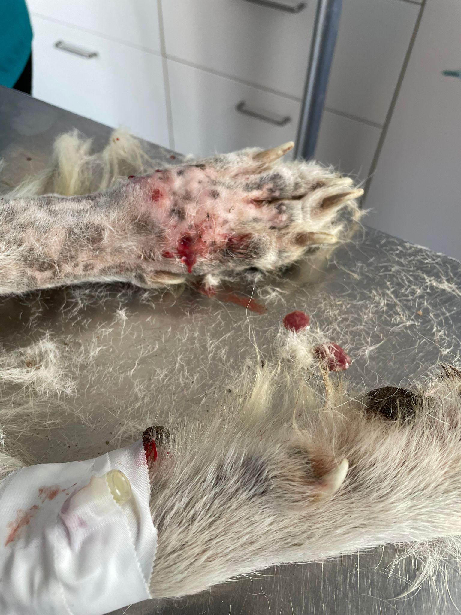 Speranza hatte eine Gebärmuttervereiterung, Granen im ganzen Körper und auch in der Pfote. Sie ist nun kastriert und kann sich auf einem kostenpflichtigen Pensionsplatz bei Isotta in der Toskana erholen.