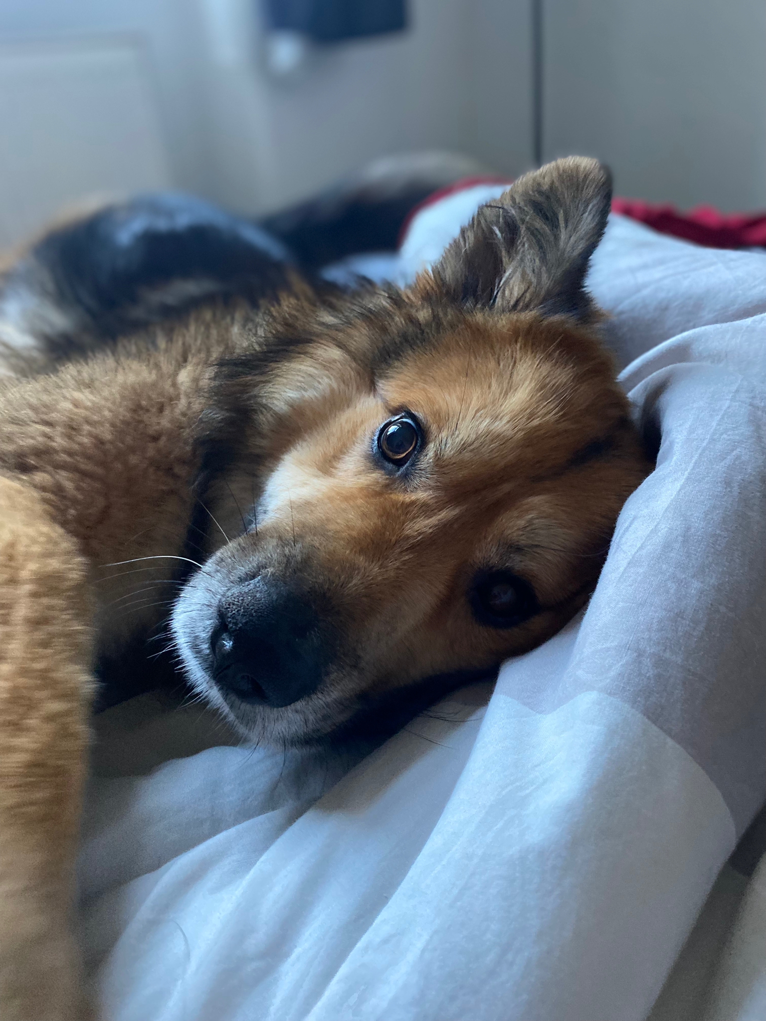 Tatsächlich ist unübersehbar, dass Sullys Gang nicht ganz normal ist. Wir haben Sully dem Tierarzt vorgestellt. Er wurde geröntgt und unser Verdacht auf eine Hüftgelenksdysplasie hat sich bestätigt. Die Gelenkköpfe sind so weit von den Pfannen entfernt, dass es einfach nicht möglich ist, dass sie hineinkommen. Durch diese Entfernung reibt es aber nicht und verursacht Sully so zum Glück aktuell keine Schmerzen. Wenn Sie sich also nicht an einem etwas speziellen Gangbild stören, können Sie sich gerne bei mir melden. Wir haben auch einige Videos, in denen Sie Sully in Bewegung sehen. Lassen Sie sich bitte nicht davon abschrecken!!!