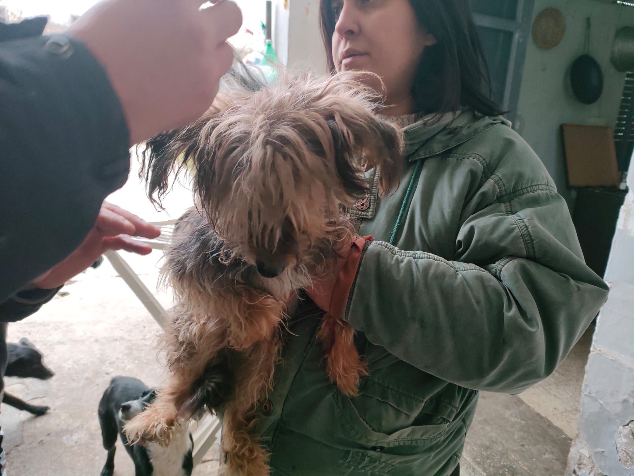 Sweety ist eine der neun Hunde, von deren Schicksal ich nun berichten möchte. Da war eine alleinstehende Frau, in ärmlichen Verhältnissen. Sie besaß trotzdem NEUN Hunde. Kaum war sie in der Lage, sie zu ernähren. Es gab Wasser und Brot… Alle Hunde kennen aktuell ausschließlich den Hof, in dem sie mit der Frau lebten. Spazieren gehen war ihr wohl nicht möglich. Nachdem sie verstorben ist, ist da niemand, der sich um die Hunde kümmern kann. Doch zum großen Glück so vieler Hunde gibt es Giusy und ihre Helfer! Das ist zunächst die Rettung aus dem Disaster.