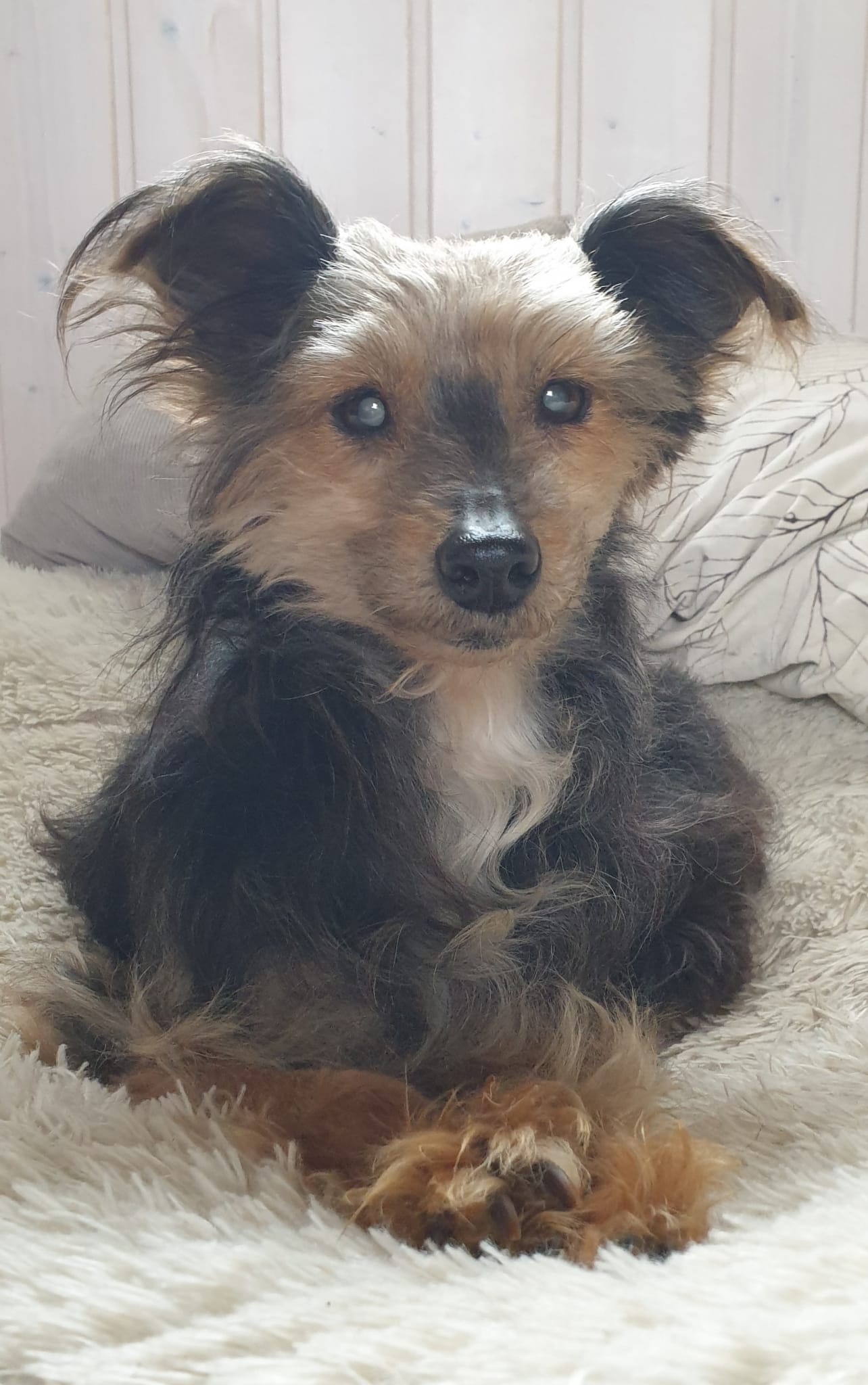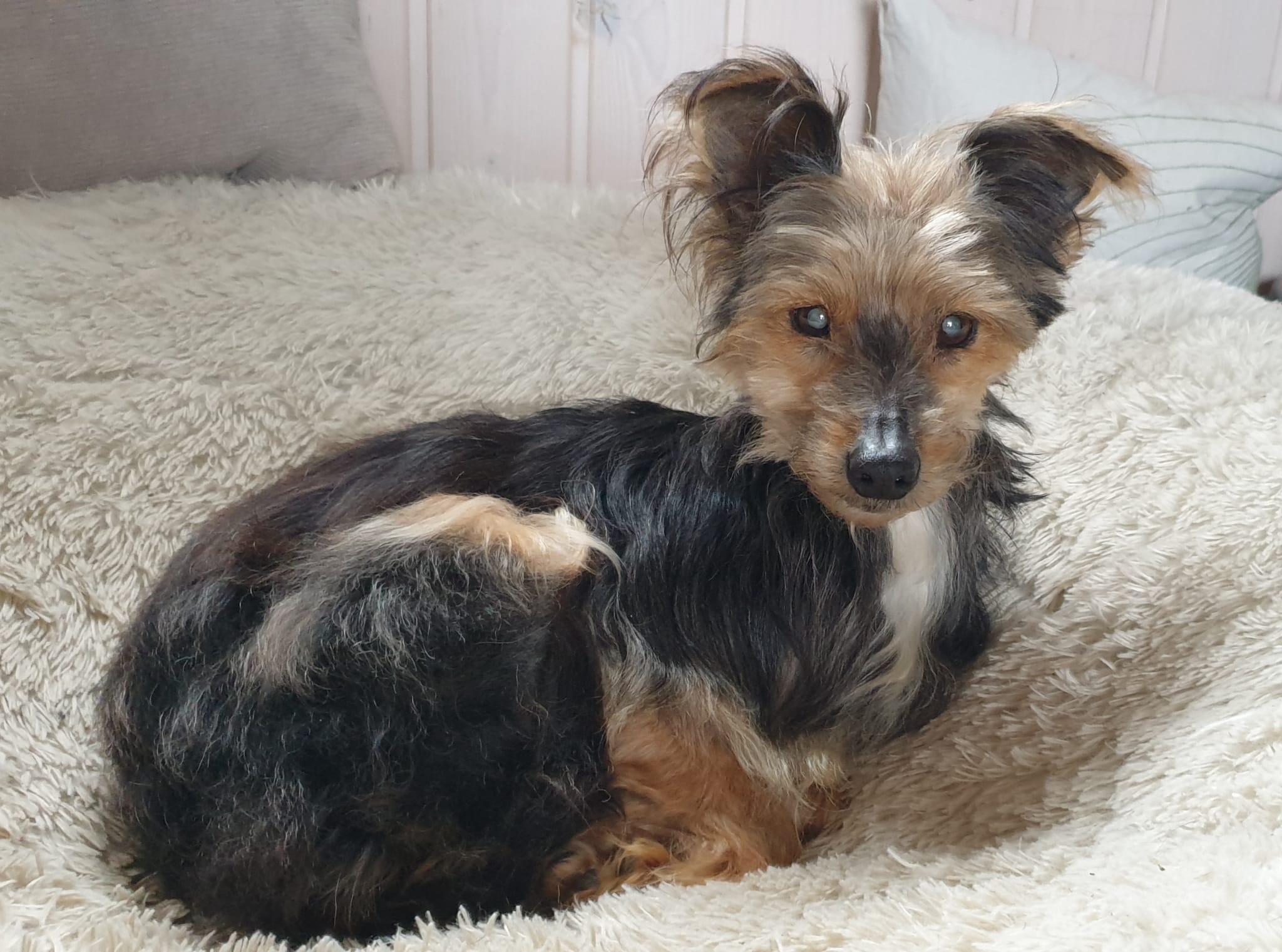 Von einer Sehbehinderung ist im Alltag nichts zu merken. Sweety zeigt keinerlei Einschränkungen, kommt mit den Hunden und der Katze gut zurecht und auch mit den Räumlichkeiten und beim Spaziergang. Daher nehmen wir sie aus der Rubrik Handicap.