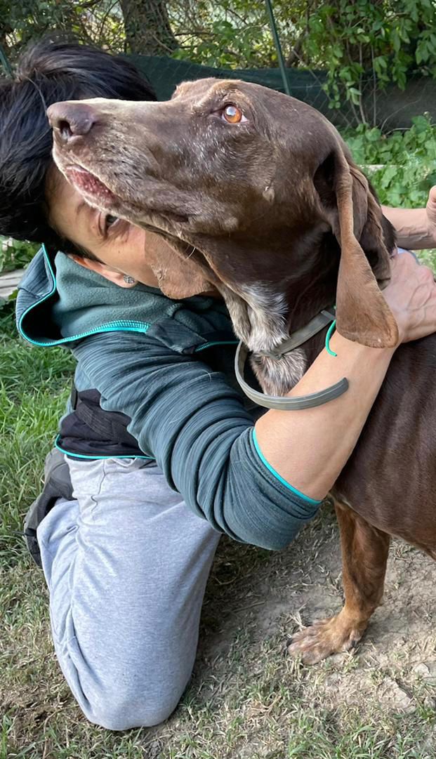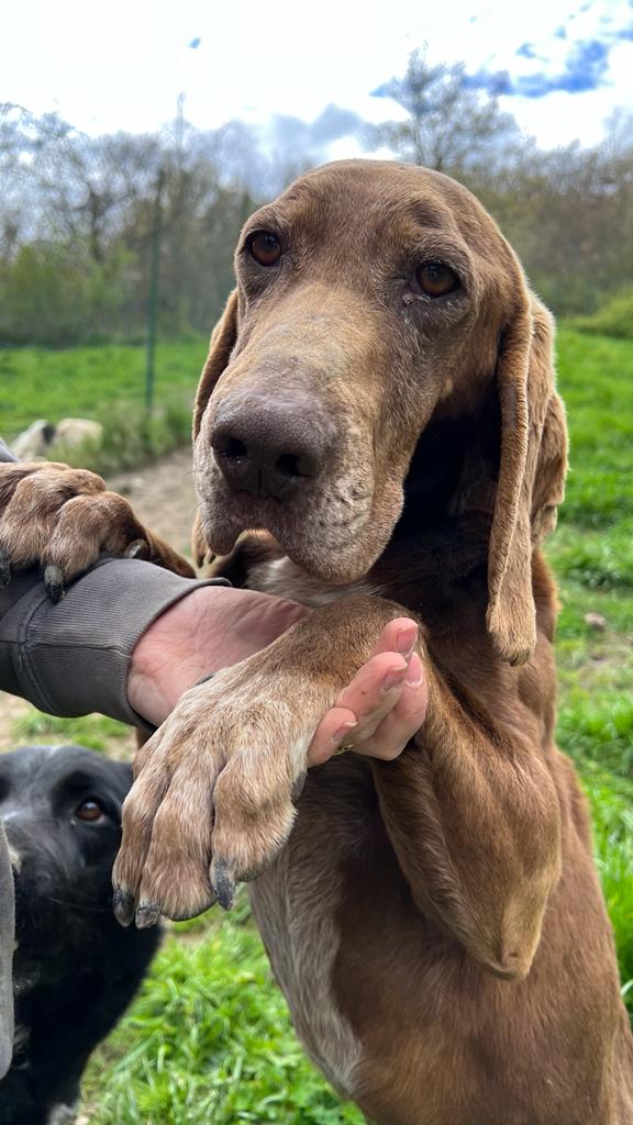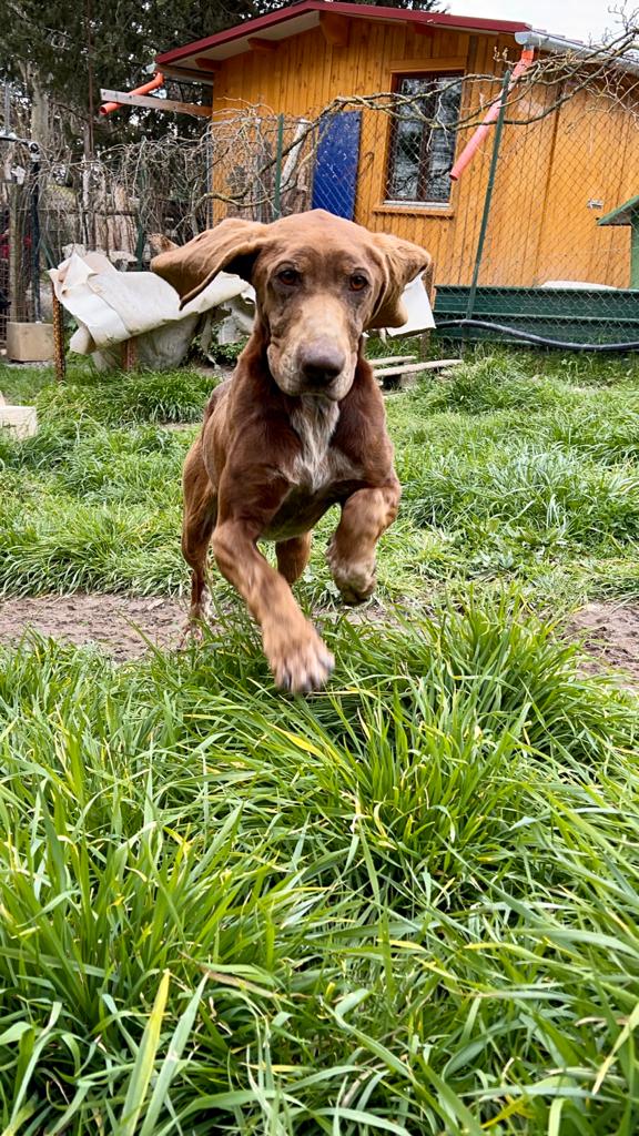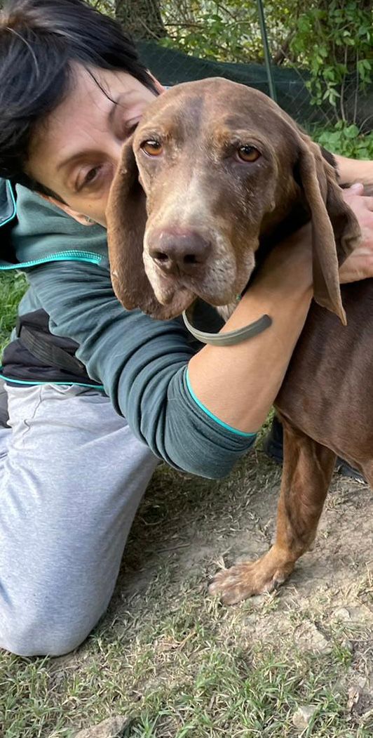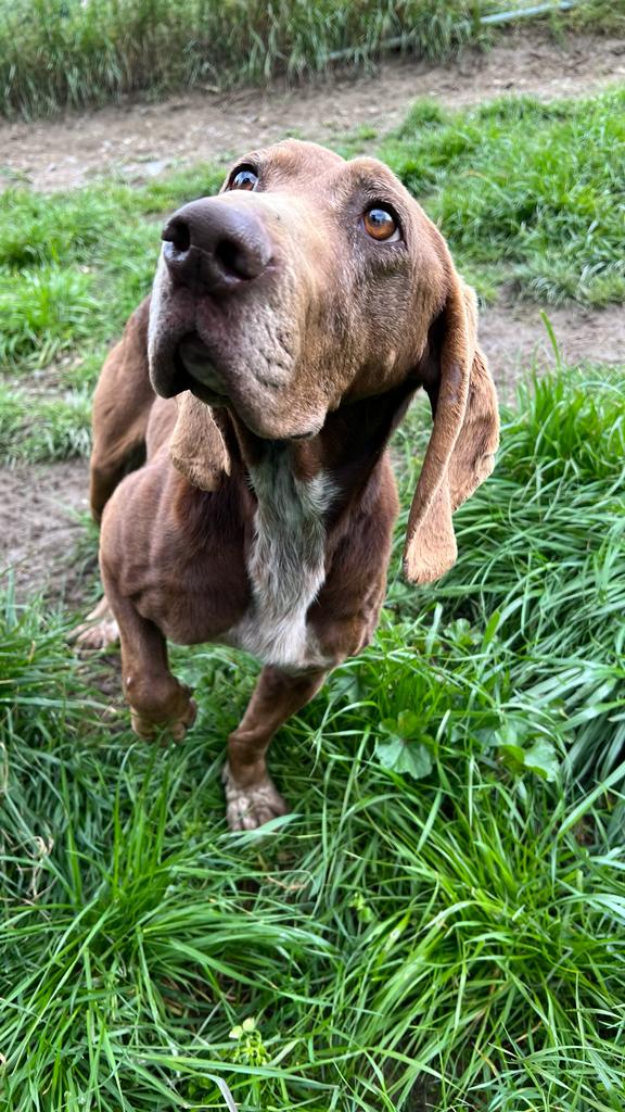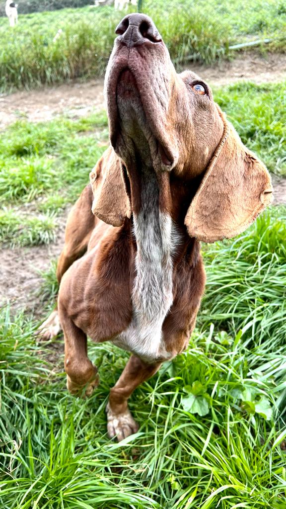 Natürlich hat Monia der Übernahme zugestimmt und so wurde bei Brunella ein bißchen mehr zusammengerückt, um dem netten Seguggio Maremmano aufzunehmen. Tassello ist in 08/2018 geboren und unkastriert. Er hat ein sehr gutes Sozialverhalten, lebt im Moment mit Timo und Ghandi zusammen und manchmal auch mit Marta. Neuen Menschen begegnet er offen und freundlich, er ist völlig unkompliziert und einfach nur nett. Sicher wurde er durch einen jüngeren Jagdhund ersetzt und strebt nun eine zweite Karriere als Familienhund an. Die Bedürfnisse eines jagdlichen Laufhundes müssen natürlich erfüllt sein. Er braucht Auslastung, um ein gechillter Mitbewohner sein zu können. Wir freuen uns über einen gut eingezäunten Garten, damit Tassello auch mal ohne Leine herumtollen kann. Wir gehen von Jagdinteresse aus und daher muss der schöne braune mit den tollen Schlappohren sicher an die Schleppleine. Für seine große Reise ist alles gerichtet, fehlen nur noch tolle neuen Menschen an seiner Seite.