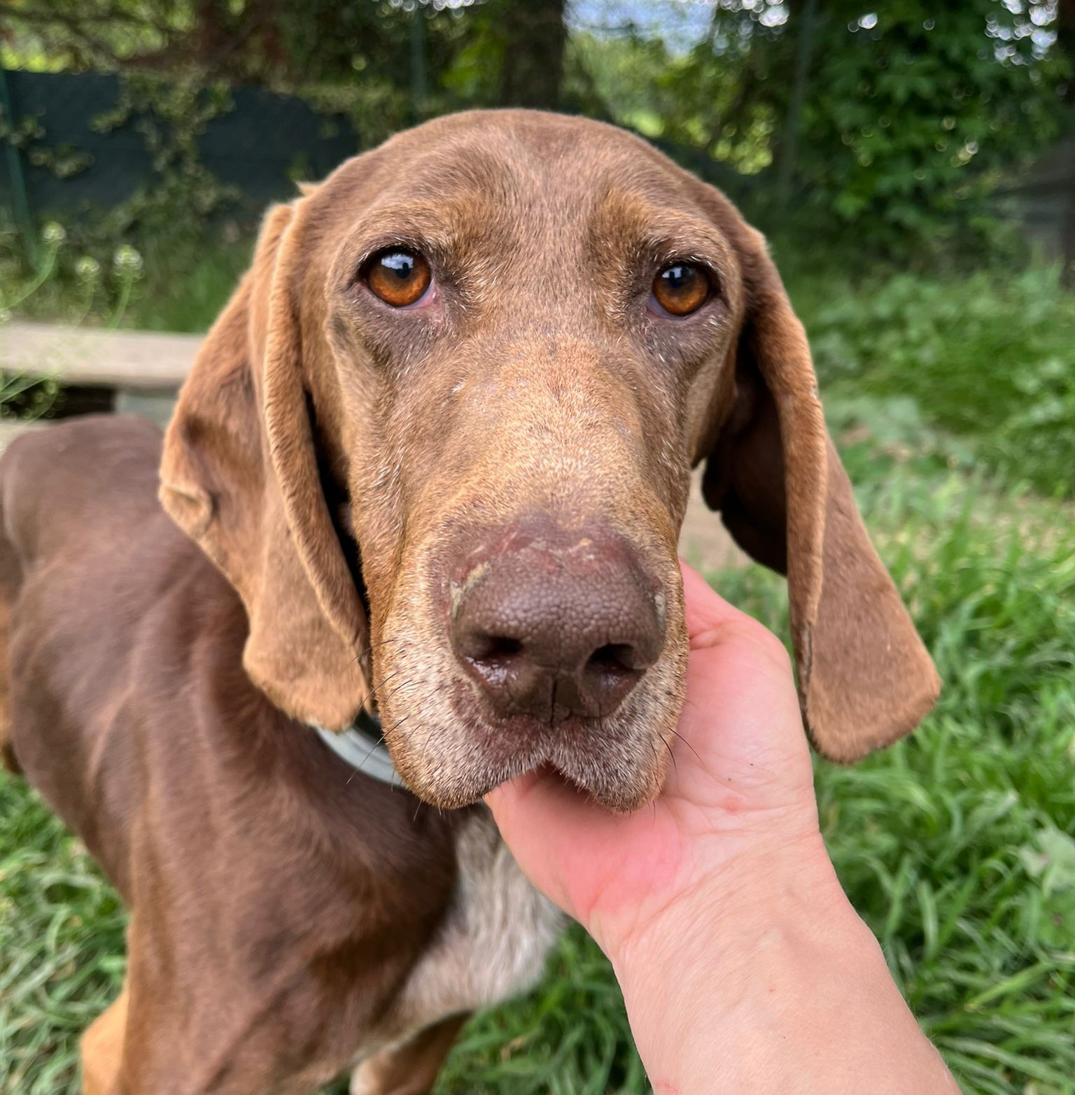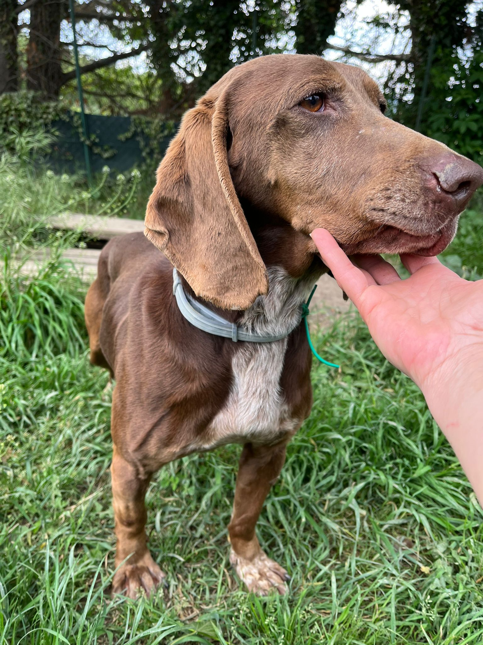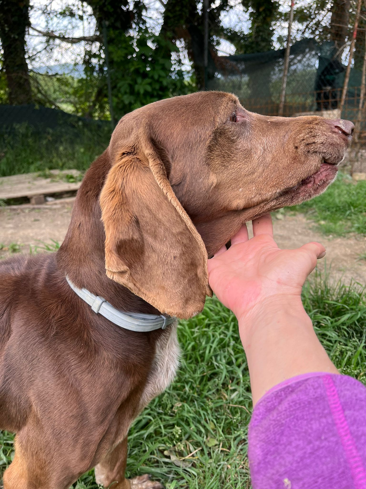 Natürlich hat Monia der Übernahme zugestimmt und so wurde bei Brunella ein bißchen mehr zusammengerückt, um dem netten Seguggio Maremmano aufzunehmen. Tassello ist in 08/2018 geboren und unkastriert. Er hat ein sehr gutes Sozialverhalten, lebt im Moment mit Timo und Ghandi zusammen und manchmal auch mit Marta. Neuen Menschen begegnet er offen und freundlich, er ist völlig unkompliziert und einfach nur nett. Sicher wurde er durch einen jüngeren Jagdhund ersetzt und strebt nun eine zweite Karriere als Familienhund an. Die Bedürfnisse eines jagdlichen Laufhundes müssen natürlich erfüllt sein. Er braucht Auslastung, um ein gechillter Mitbewohner sein zu können. Wir freuen uns über einen gut eingezäunten Garten, damit Tassello auch mal ohne Leine herumtollen kann. Wir gehen von Jagdinteresse aus und daher muss der schöne braune mit den tollen Schlappohren sicher an die Schleppleine. Für seine große Reise ist alles gerichtet, fehlen nur noch tolle neuen Menschen an seiner Seite.