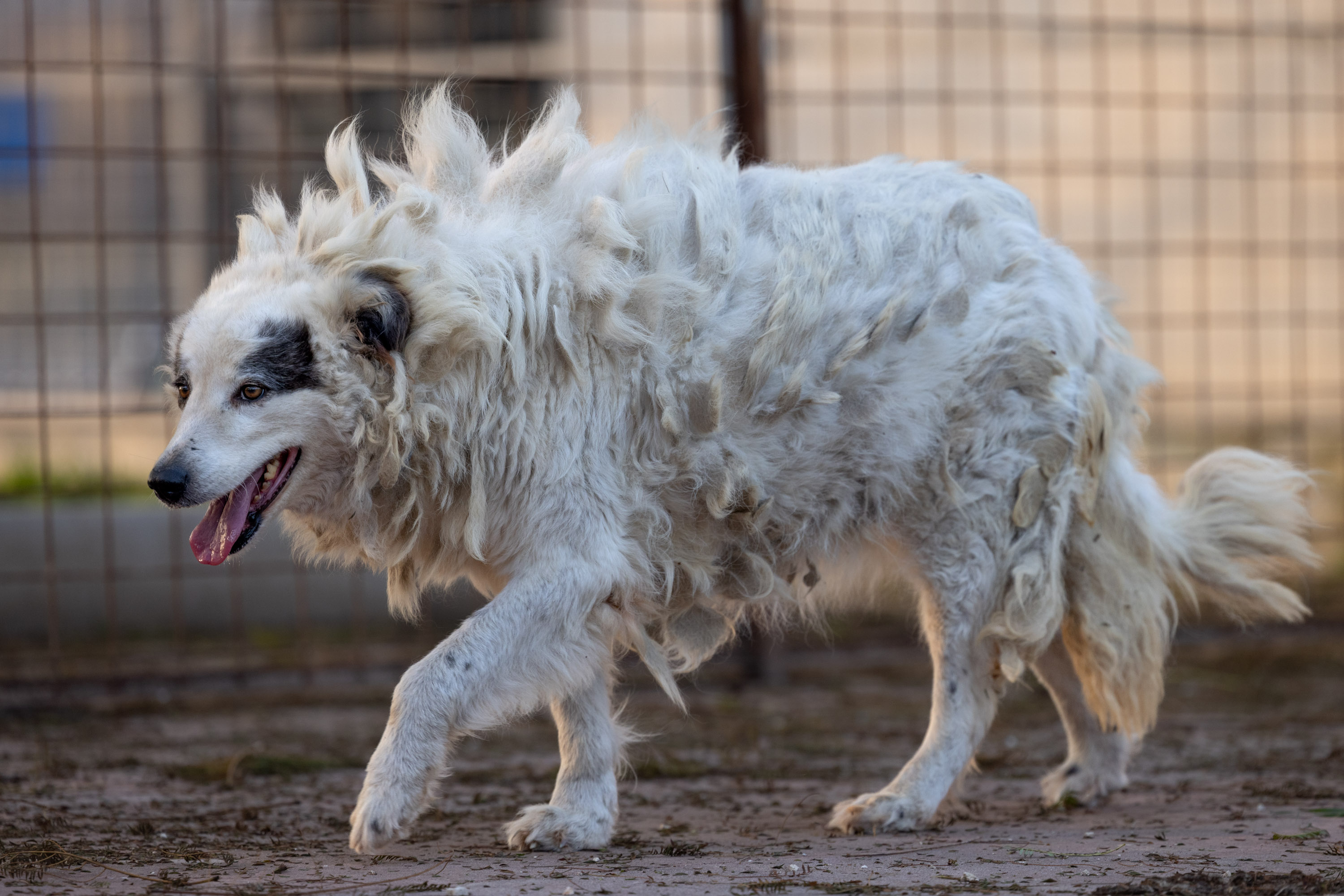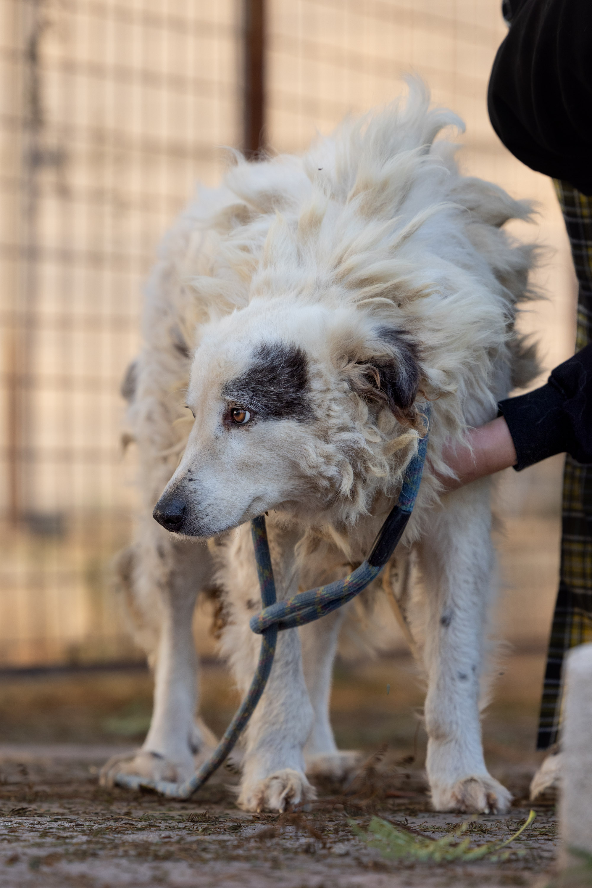 Tessa ist Menschen gegenüber zunächst schüchtern, dann lässt sie sich streicheln. Ihr Fell benötigt unbedingt eine Rasur, wahrscheinlich ist das nur sediert möglich. Als Maremmano Mischling braucht Tessa erfahrene Hände, zumal sie Vertrauen zu Menschen erst weiter aufbauen muss. Ein hoch eingezäunter Garten ist für diese die Freiheit gewöhnte Hündin ein Muss. Bestimmt wird sie gerne ihr Gelände ablaufen um dann entspannt in der Sonne zu liegen. Das wünschen wir uns für Tessa. Dem Leben im Canile und damit im Zwinger, wird sie nur mit unserer Hilfe entkommen können.